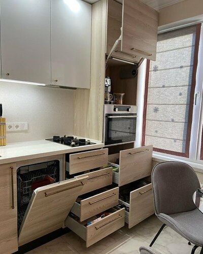 Заказали у Рината кухонный гарнитур, по моим размерам предложил несколько интересных вариантов с хорошей комплектацией по фурнитуре и исполнению. На протяжении всего процесса информировал об изготовлении и сроках доставки. Материал кухни выполнен качественно, при сборке не возникло никаких проблем, итоговый вариант совпал с нашими желаниями и ожиданиями!